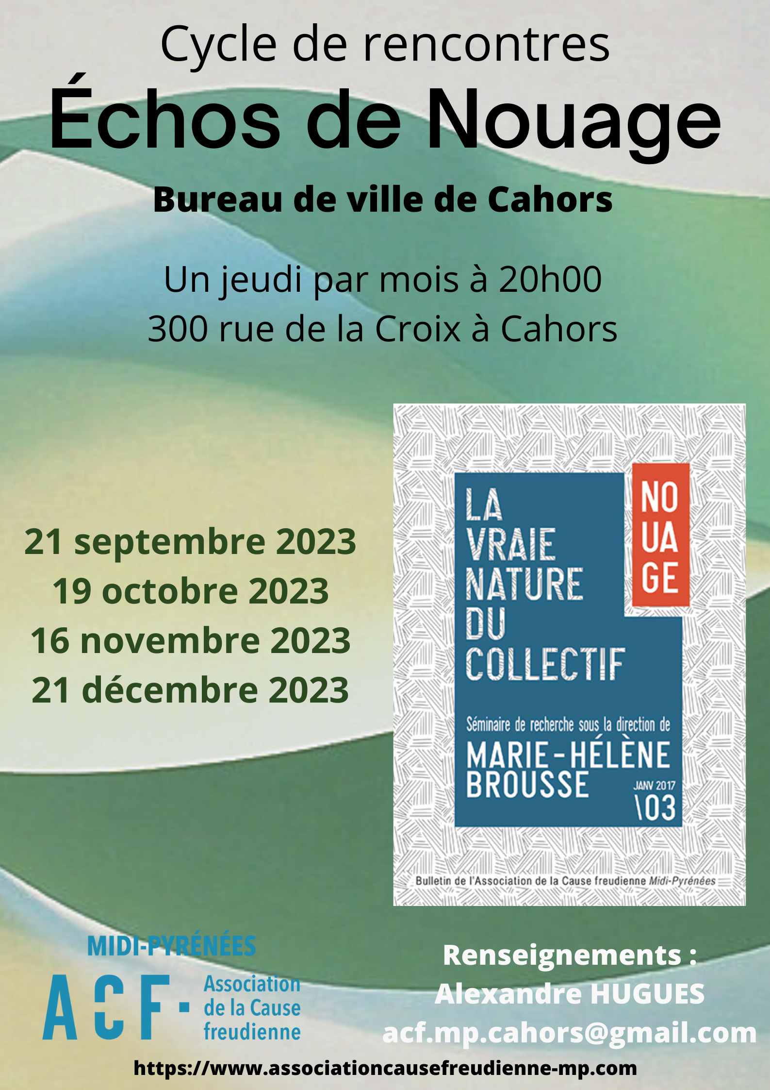 Par ailleurs, le vendredi 09 février prochain, pour ponctuer et enrichir le travail engagé, Victor Rodriguez, psychanalyste à Toulouse, membre de l'ECF, viendra pour la soirée échanger avec nous.