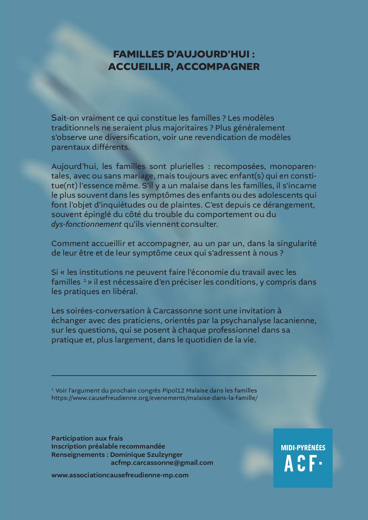 Les soirées de conversation à Carcassonne sont une invitation à échanger avec des praticiens, orientés par la psychanalyse lacanienne, sur ces questions, qui se posent à chaque professionnel dans sa pratique, et, plus largement, dans le quotidien de la vie.